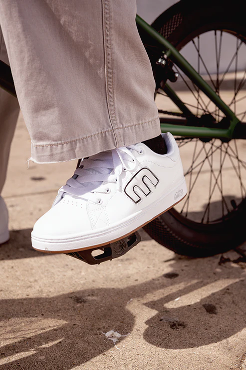 El modelo más famoso de Etnies, el Callicut, llega en una paleta de colores blanca con detalles en negro para un calzado casual con un toque del año 2000. Ideales para el skatepark o para una fiesta, estas zapatillas monocromáticas presentan una parte superior de cuero sintético impecable con un diseño sencillo que combina fácilmente con cualquier look. Con amortiguación reforzada en el talón y una suela exterior de TPR para una tracción estable, estos zapatos de skate son tan prácticos como elegantes.